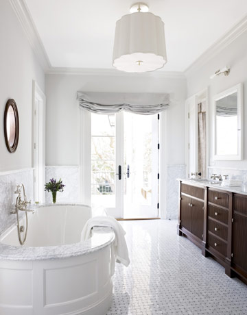 Diana Sawicki beautifully exemplifies the power of white on white in this fabulous bathroom